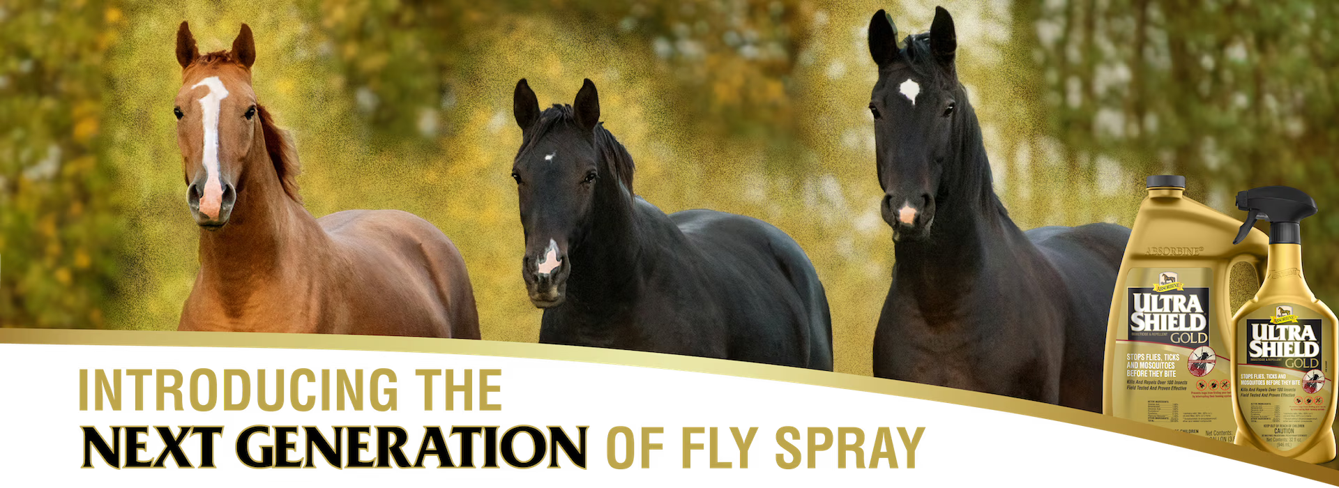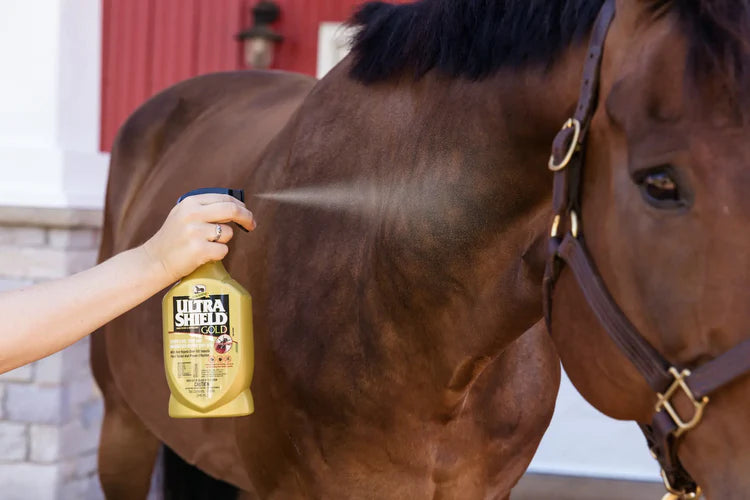 UltraShield® Gold offers Absorbine’s most advanced fly protection with a formula that works differently than traditional fly sprays. Formulated with innovative Absorbine FlyShield®, UltraShield® Gold delivers exceptional repellency and protection from biting insects by disrupting their ability to locate and land on your horse. You can count on UltraShield® Gold to protect your horse from over 100 different insects, even when the bugs are at their worst.